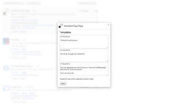 Kickstarter Easy Reply is a Chrome extension developed by Semih Hazar that aims to streamline your messaging experience on Kickstarter. This simple yet powerful tool allows you to create up to three canned replies, making it easier and faster to respond to your Kickstarter messages.